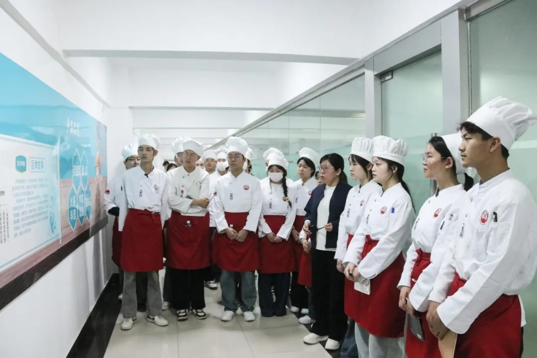 上午8时,烹饪工艺与营养专业128名学生身着统一服装,意气奋发,热情洋溢,在厂区工作人员的引导下整齐有序地进入厂区 ,分组参观了华昱食品园区生鲜品车间、丸子智能化生产线、创新研发中心、检测中心等核心生产区域,全程观摩了从生猪屠宰到深加工成品的全产业链流程,并在众品优食、华昱工坊品鉴了企业生产的各色美食。通过近距离接触智能化生产设备、标准化操作流程、创新研发体系及电商直播场景,师生们直观感受到了现代食品产业数字化转型的高效快捷。