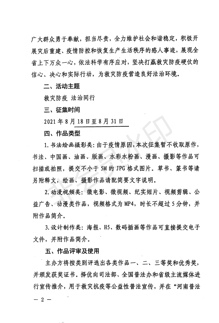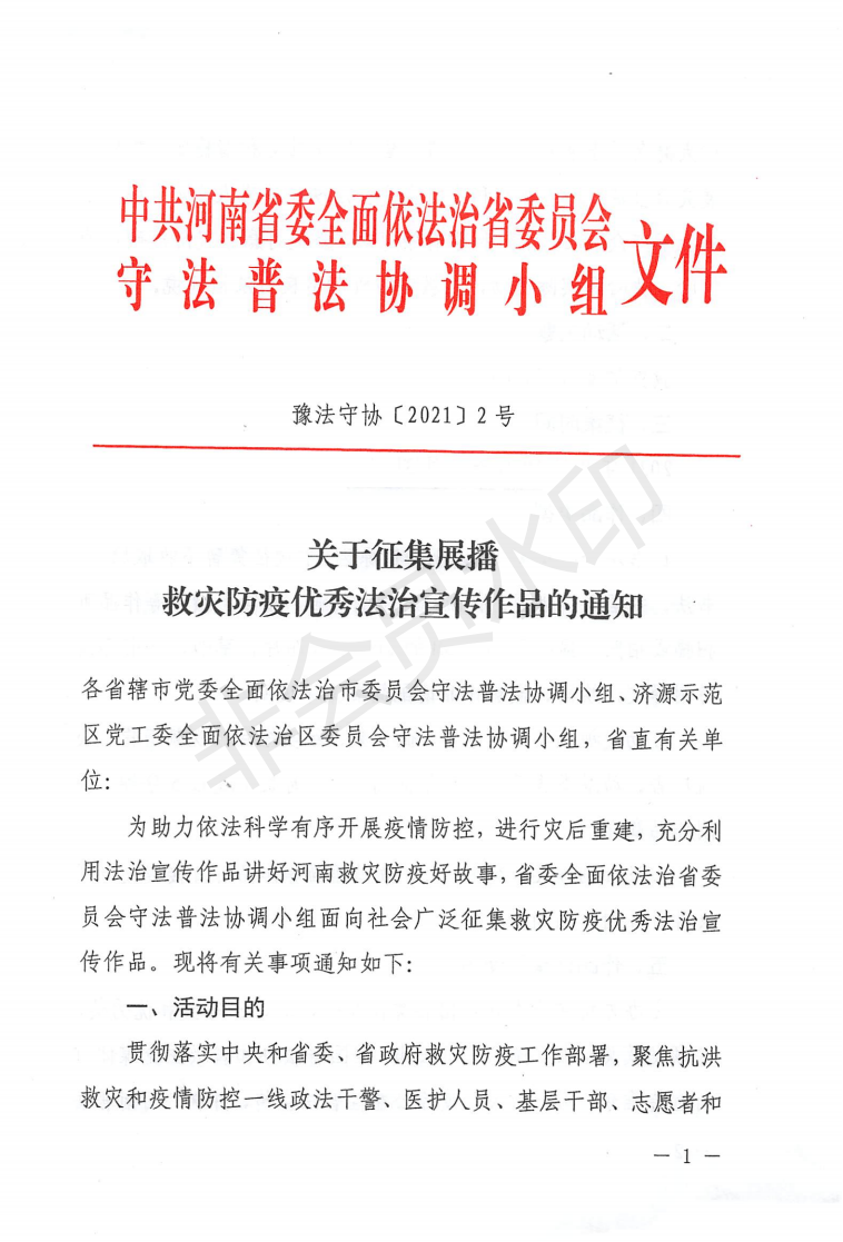 关于征集展播救灾防疫优秀法治宣传作品的通知