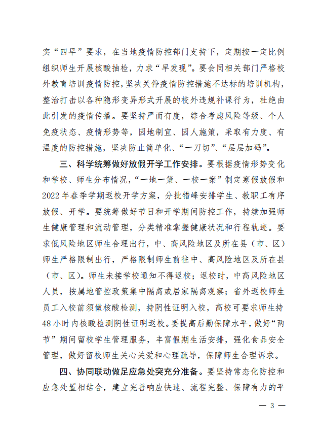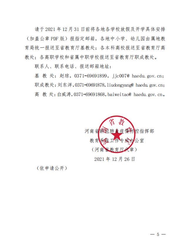 现将河南省新冠肺炎疫情防控指挥部教育系统工作专班办公室《关于扎实做好今冬明春教育系统疫情防控工作的通知》(豫疫防教专办〔2021〕149 号)转发你们。请各单位高度重视,结合Beat365实际,扎实开展Beat365今冬明春疫情防控工作。