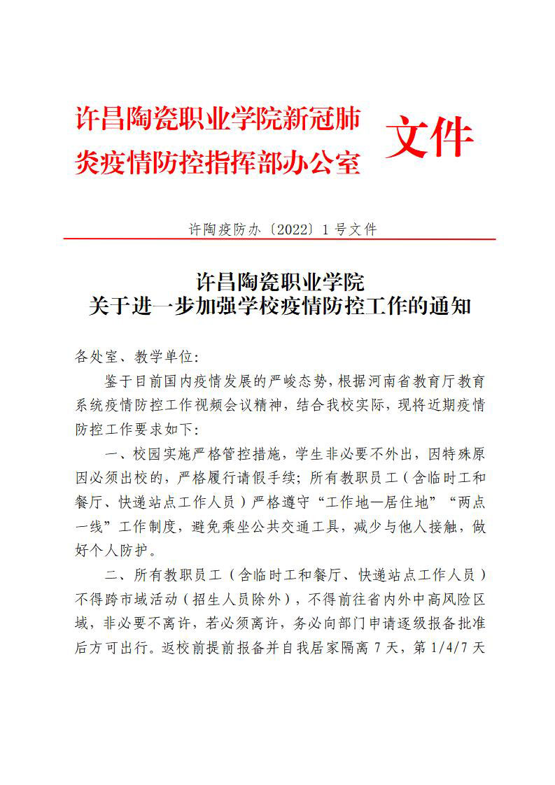 一、校园实施严格管控措施,学生非必要不外出,因特殊原因必须出校的,严格履行请假手续;所有教职员工(含临时工和餐厅、快递站点工作人员)严格遵守“工作地—居住地”“两点一线”工作制度,避免乘坐公共交通工具,减少与他人接触,做好个人防护。