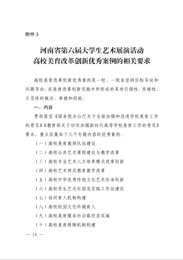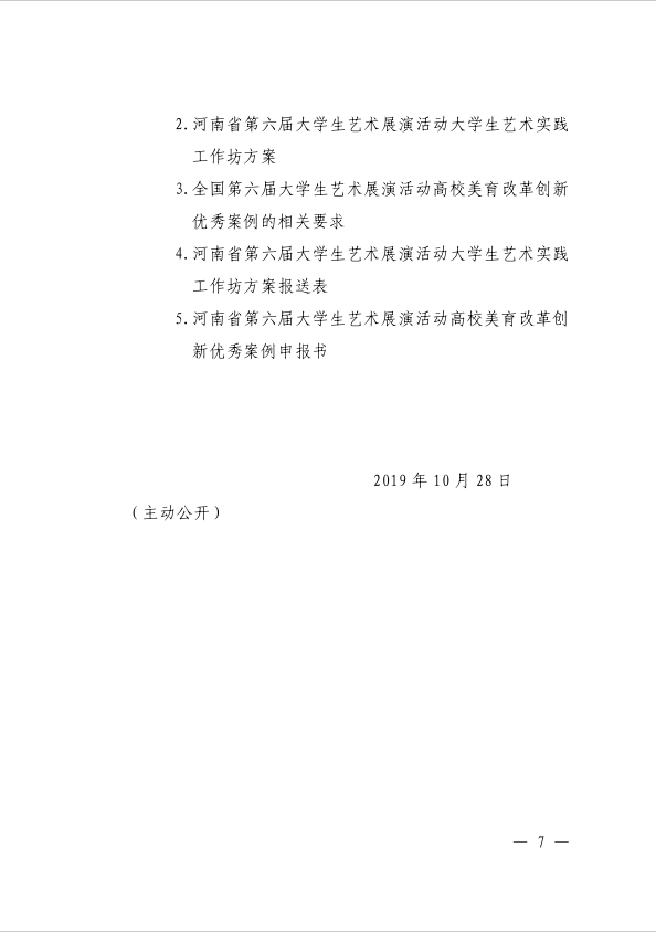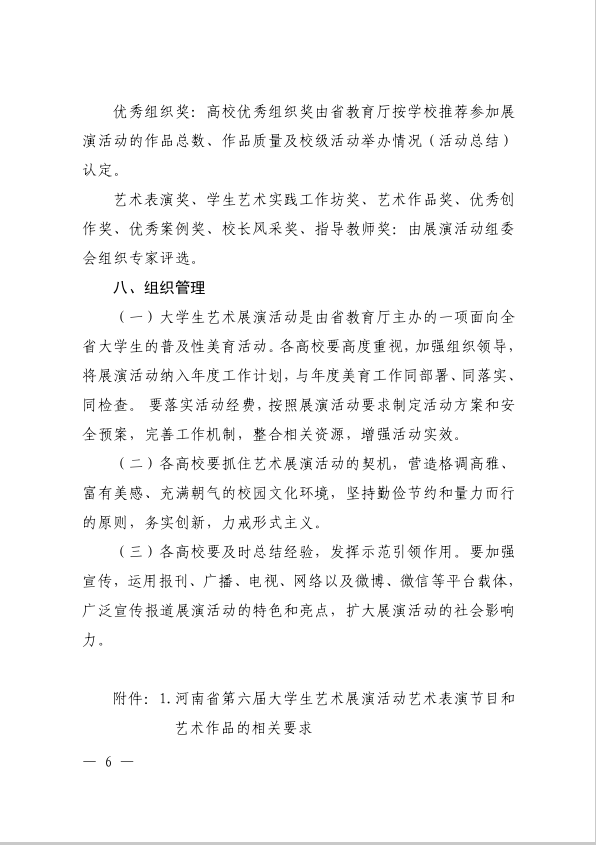 河南省教育厅办公室关于举办全省第六届大学生艺术展活动的通知