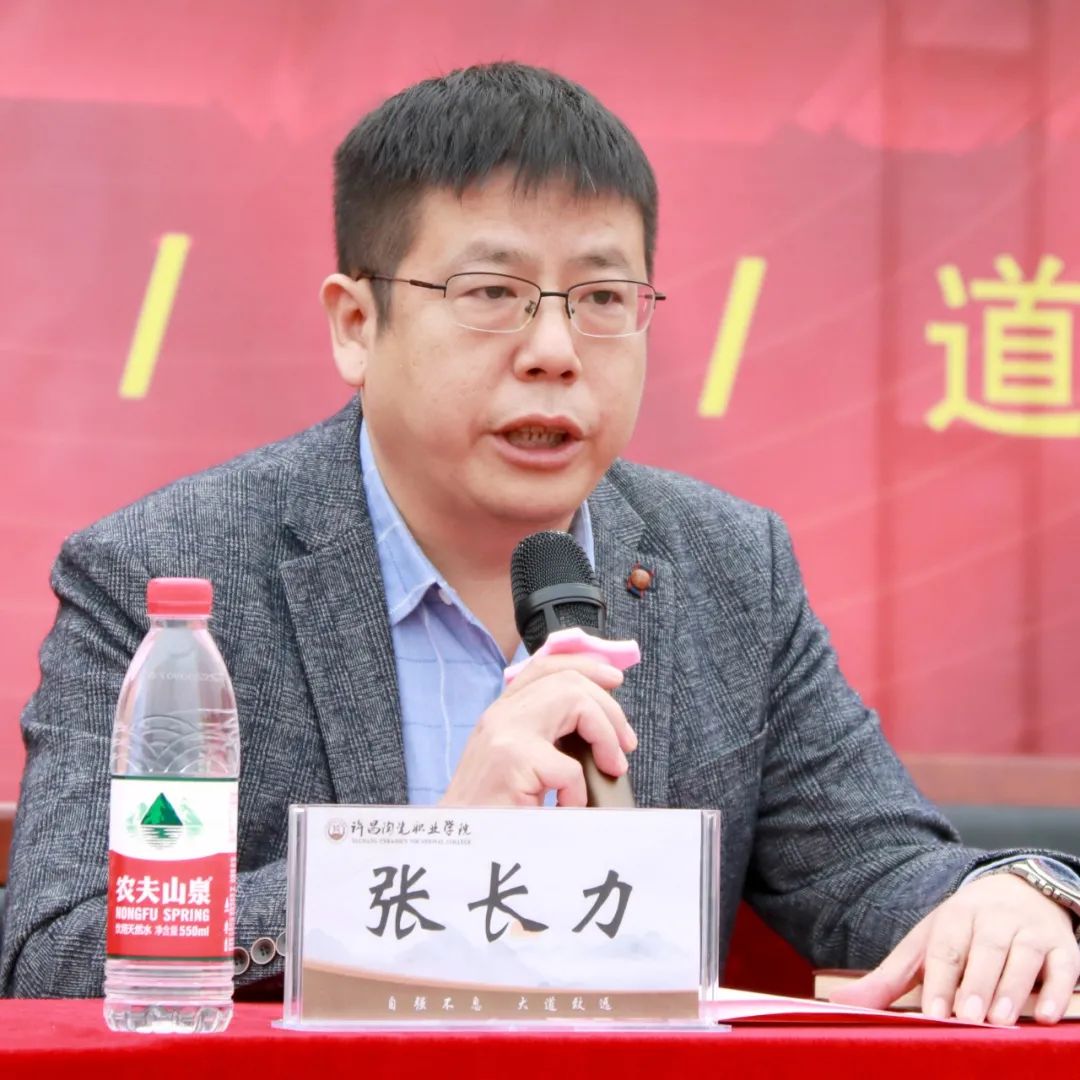 院长张道金在大会上致辞。首先,他代表学校全体师生向承训教官表达了衷心的感谢和崇高的敬意,向积极参加军训并胜利完成任务的全体同学和老师致以亲切的问候和热烈的祝贺。紧接着,他以“大学之道、大学之业”为主题分三个方面向同学们讲到:大学之道,是大人之道,是成人之道;成人立人,要正心诚意、立心铸魂;成人立人,要修齐治平、注重道德践履。最后,张院长希望同学们能够珍惜三年大学时光,领悟大学之道,成就大业之学。