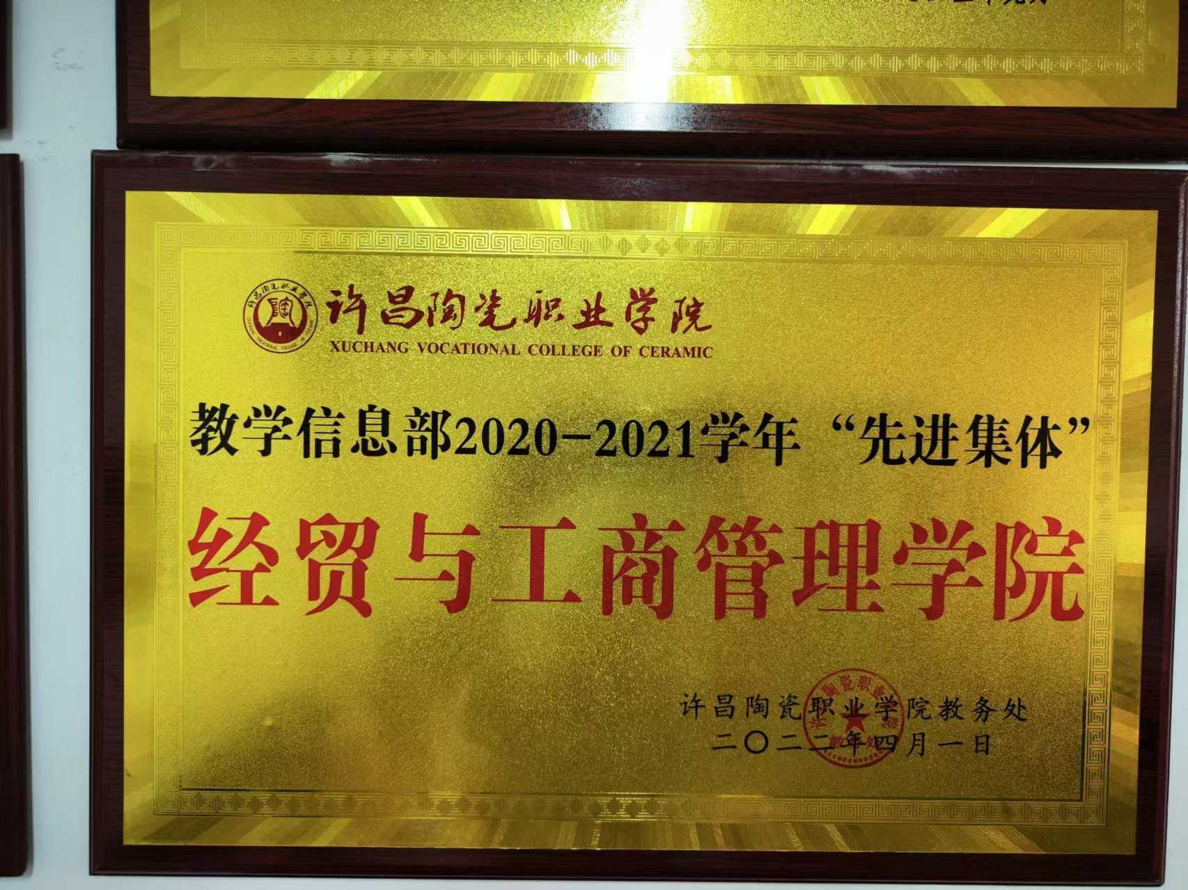 经贸与工商管理学院荣获教学信息部2020-2021学年“先进集体”
