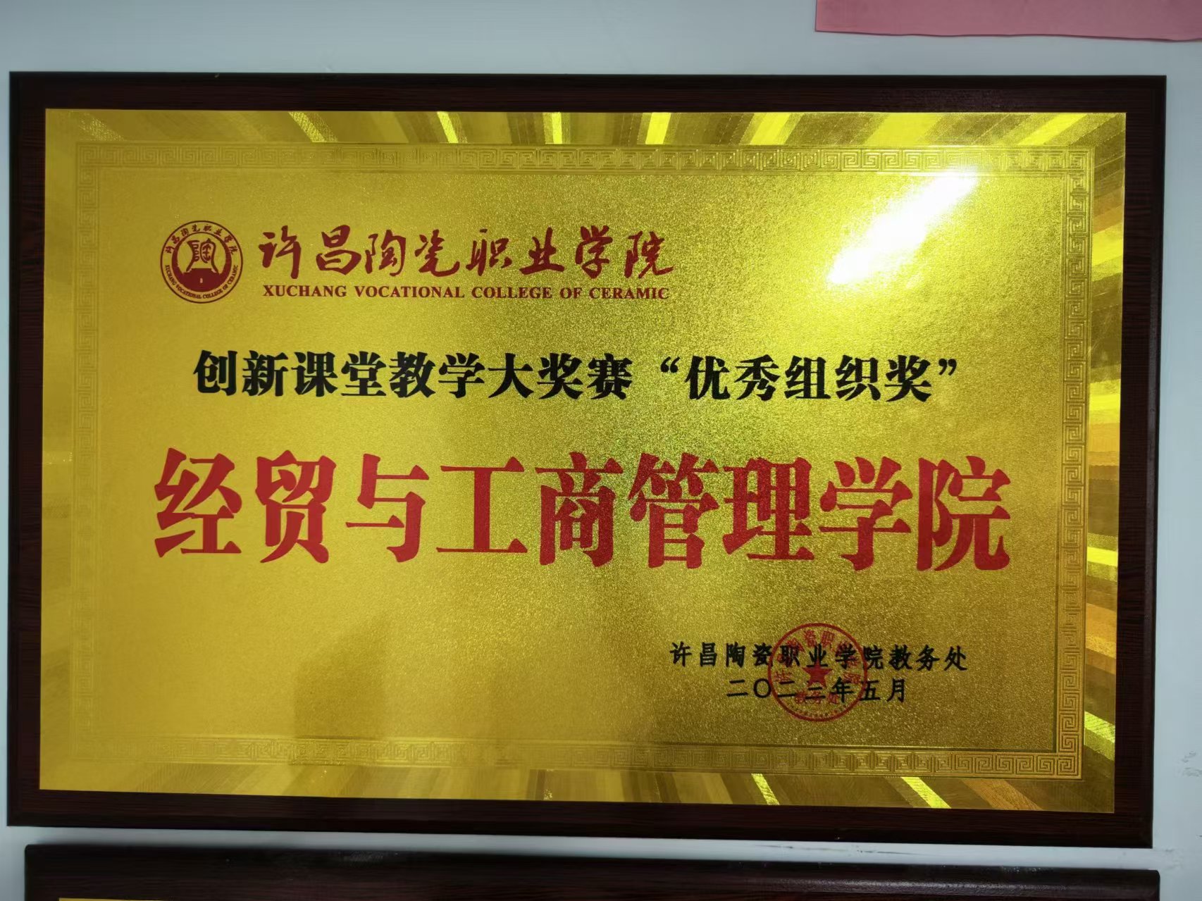 经贸与工商管理学院荣获创新课堂教学大奖赛“优秀组织奖”