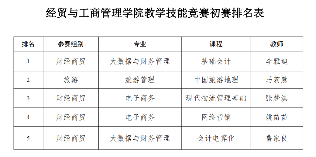 经贸与工商管理学院教学技能竞赛初赛排名公告