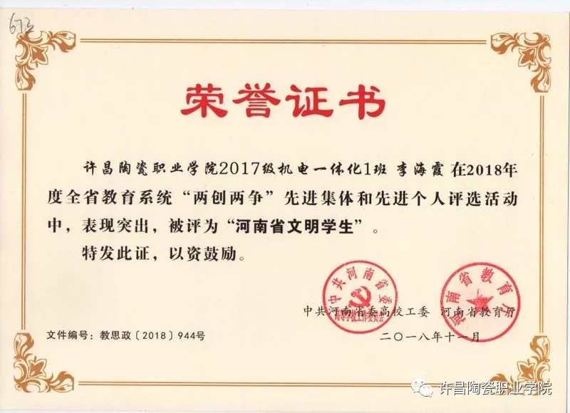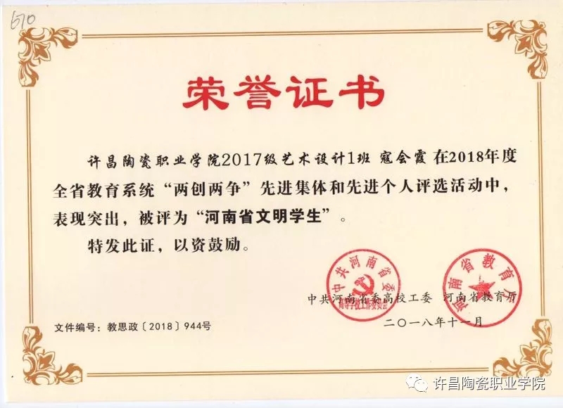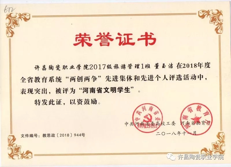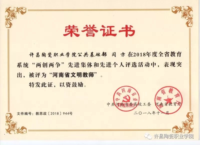 Beat365师生荣获“河南省2018年度文明教师”“文明学生”奖