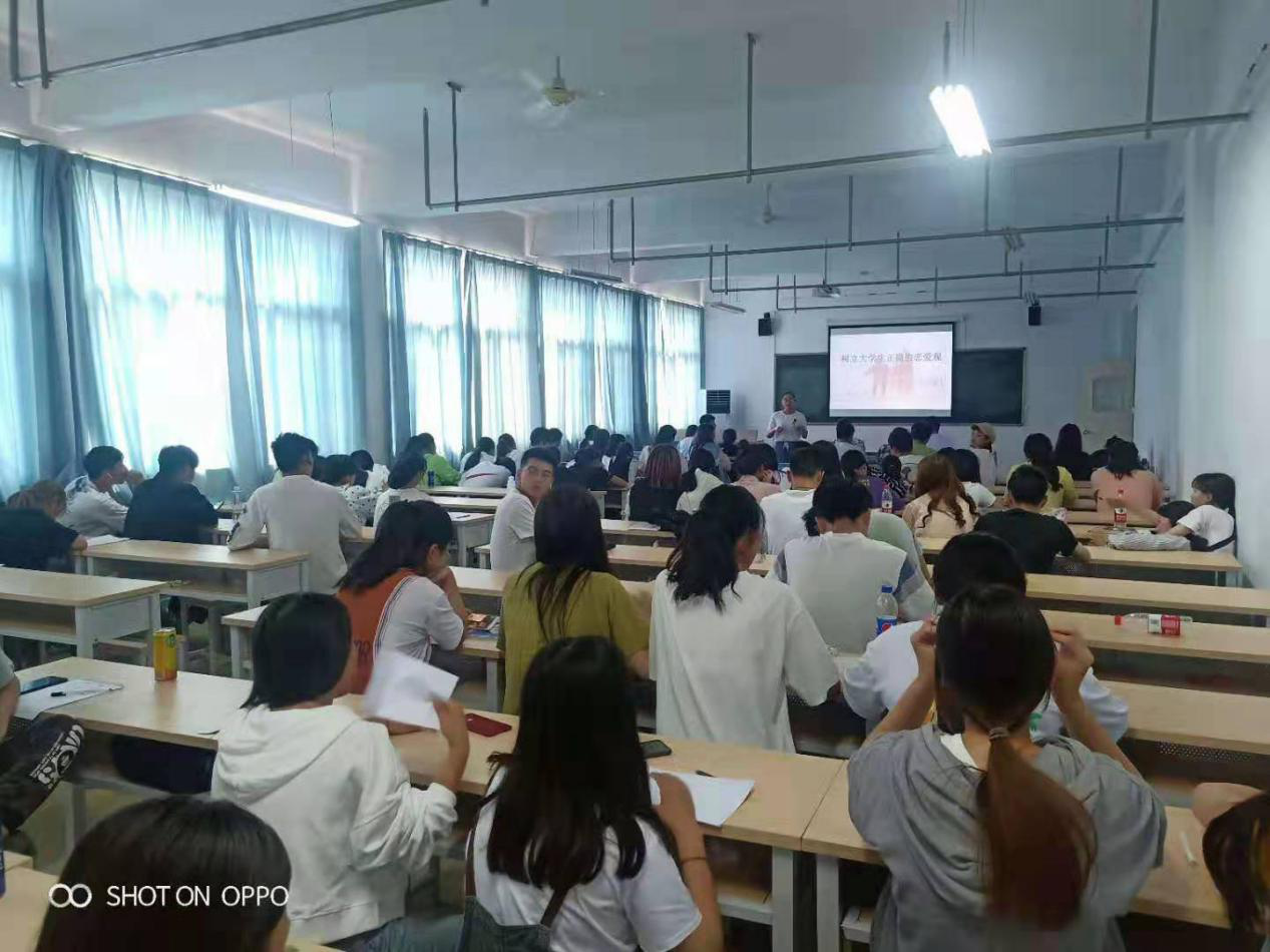 吴寨寨老师就当代大学生的恋爱现状和恋爱中存在着一些不合理的现象进行剖析,通过对恋爱观的认知与讨论,培养学生树立正确的世界观、人生观、价值观,正确对待谈恋爱这个问题。让大一新生们树立正确的恋爱观。