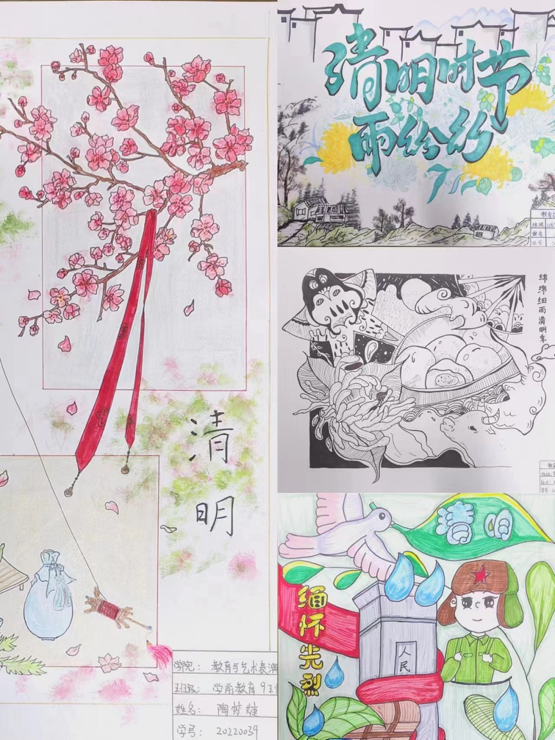 通过各班的积极组织筹备,每位同学都积极参加,用手上的画笔描绘出一幅幅美丽的画卷,有的表达对亲人的追思,有的抒发家国情怀,缅怀先烈。为英烈,为亲人,共寄哀思,让同学们对中华传统节日有了更深刻的认识。