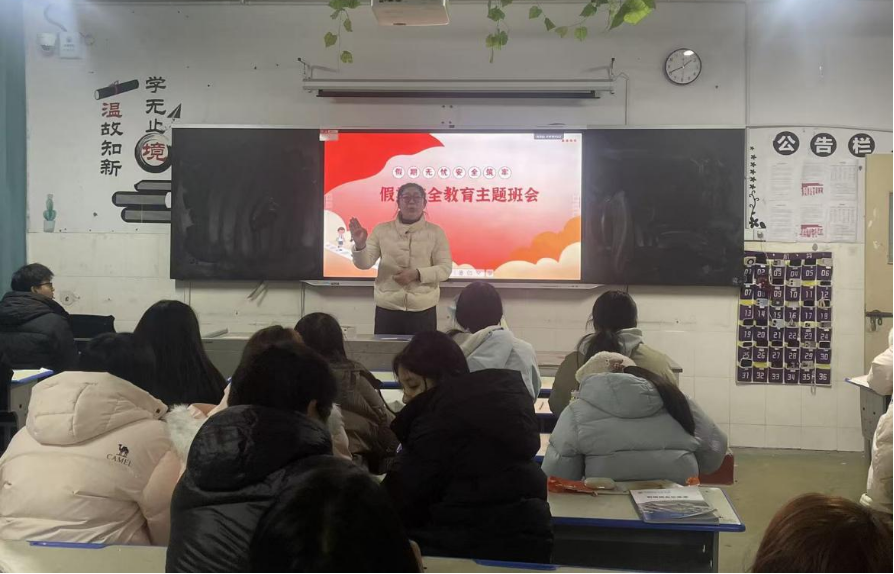 针对元旦假期特点,班会内容进一步延伸至出行安全、健康管理与防诈骗教育。出行方面,倡导学生合理规划行程,尽量避免前往人流过度密集、易发生拥挤的跨年聚集场所,防范踩踏等意外事件,同时必须遵守交通规则,低温雨雪天气注意防滑保暖。