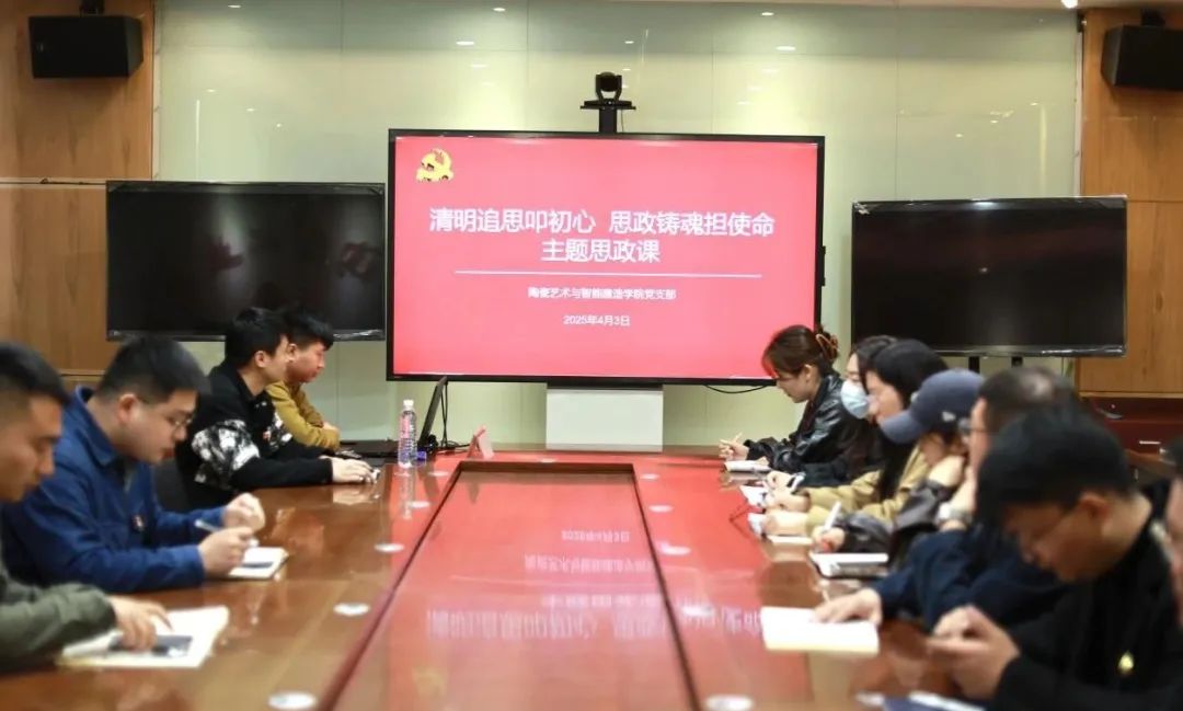 陶瓷艺术与智能建造学院党支部邀请马克思主义学院教师,围绕“缅怀先烈、铭记历史”“初心如磐、使命在肩”“知行合一、担当作为”三个章节为在场师生讲授思政课,旨在通过追忆革命先烈事迹、感悟初心使命,进一步坚定师生党员的理想信念,激发师生投身教育强国建设的责任感和使命感。