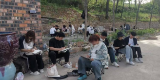 学生们置身其中,被眼前的美景深深吸引。他们用手中的画笔,细致描绘着槐树湾的古建筑、古民居和窑洞。那些古旧的房屋,墙体斑驳,瓦楞间长满了青苔,却依然散发着古朴的气息。窑洞冬暖夏凉,是当地居民独特的居住方式,其独特的造型与周边环境相得益彰,成为学生们笔下的热门题材。