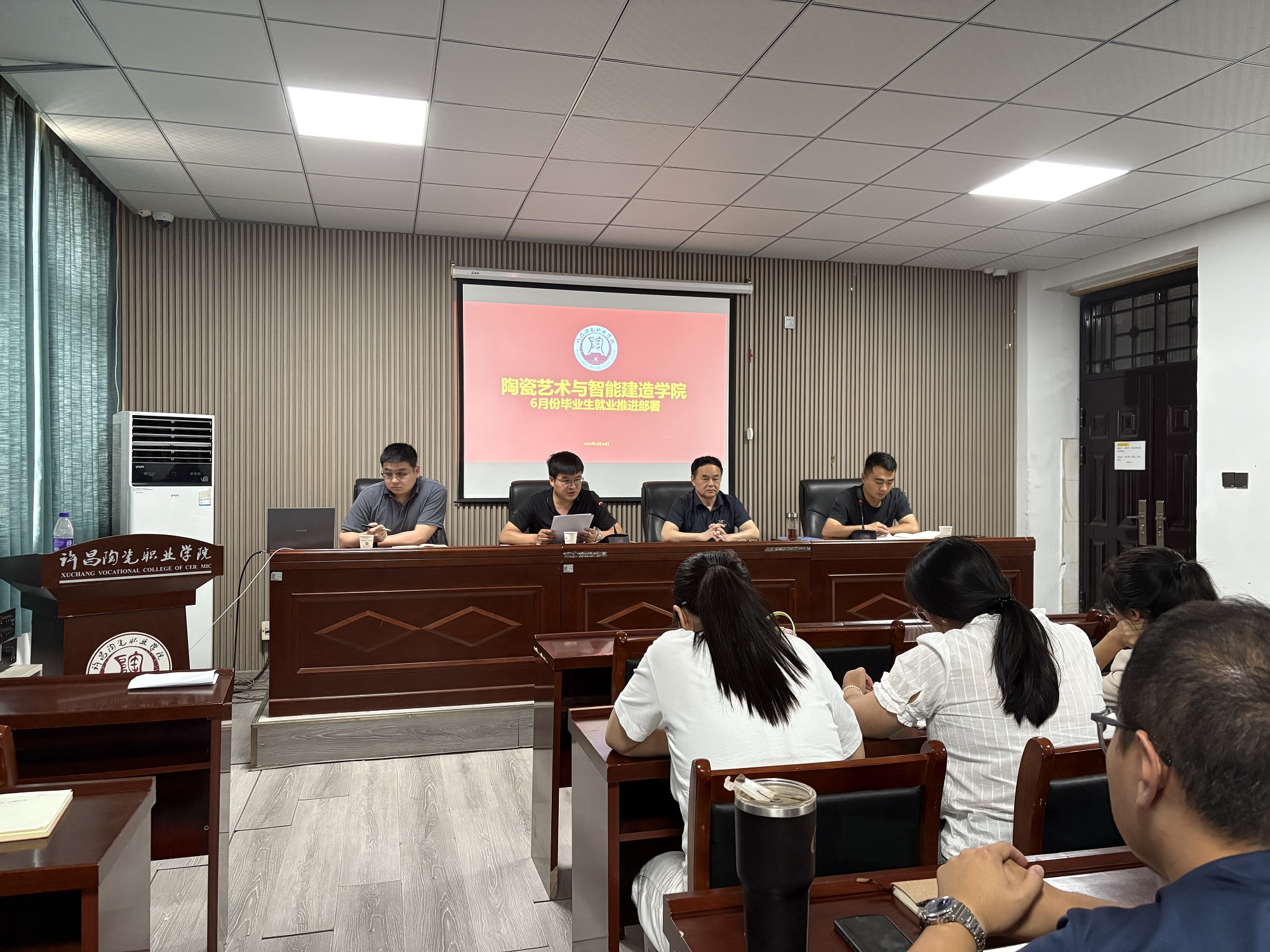学管秘书卢金刚在会上指出,5月通过压实“一把手”责任网格、开展生涯规划指导、推进三支队伍协同联动等举措,稳步推进就业工作。但校企合作深度、访企拓岗成效、 实习岗位匹配度等方面仍存在提升空间。