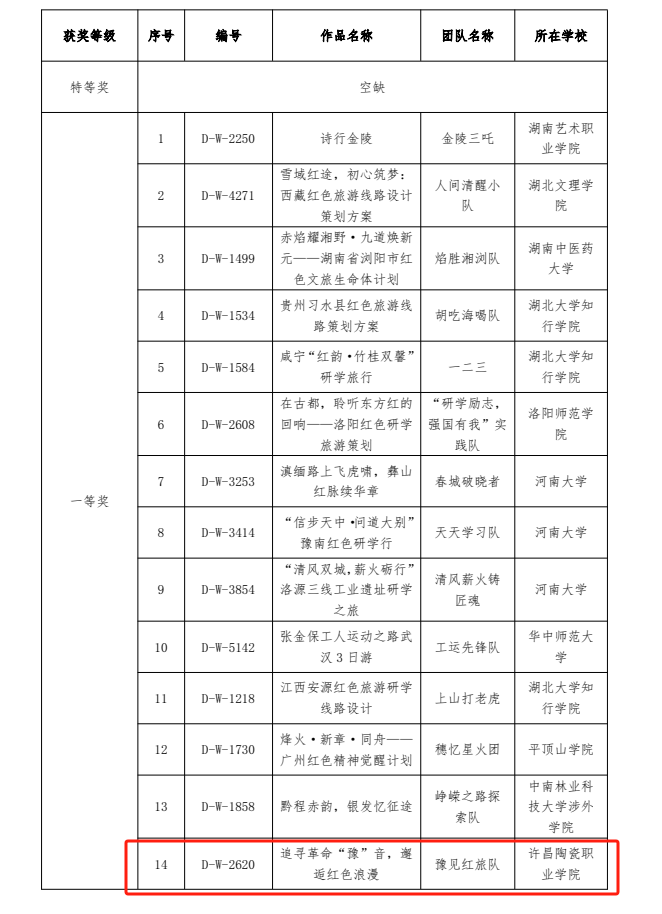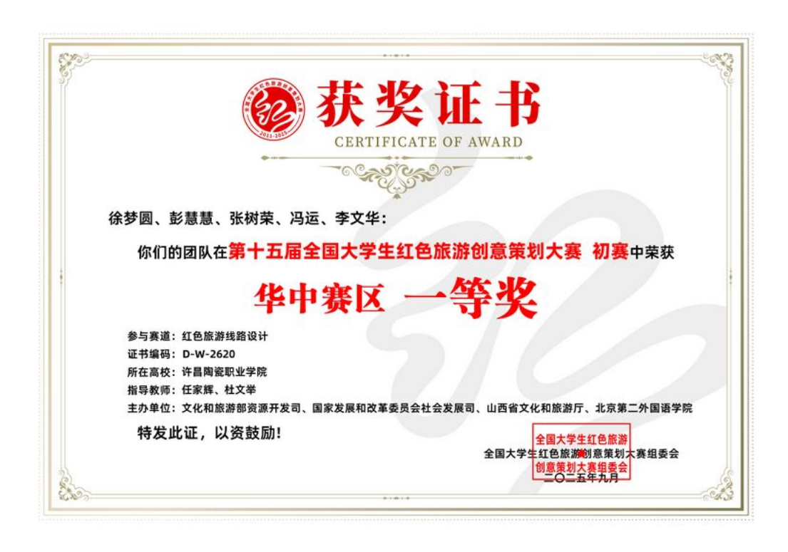 近日,由文化和旅游部资源开发司、国家发展和改革委员会社会发展司、北京第二外国语学院等单位主办的第十五届全国大学生红色旅游创意策划大赛初赛结果公布。陶瓷艺术与智能建造学院报送作品获华中赛区一等奖。