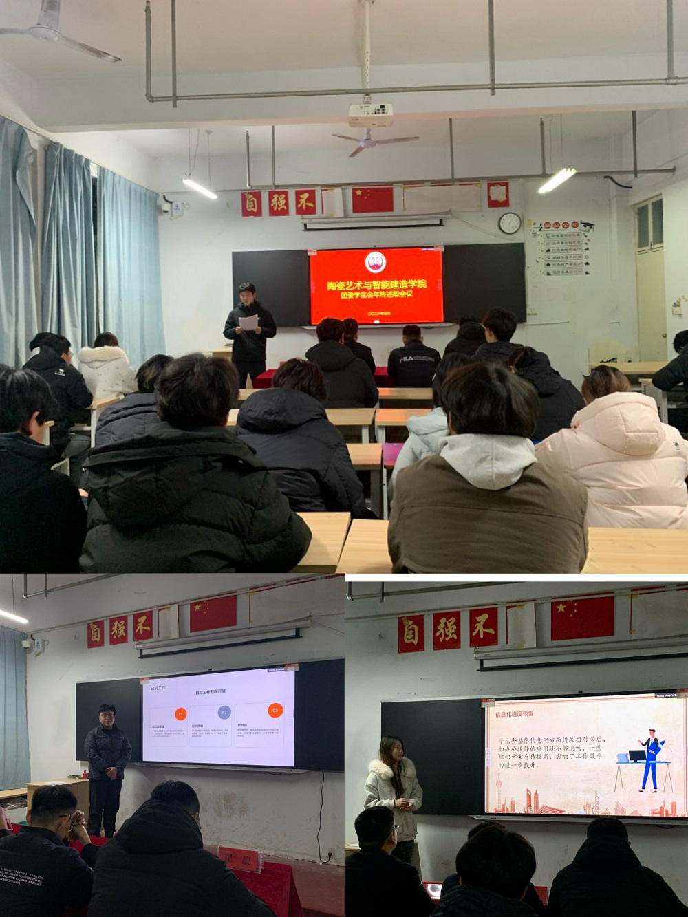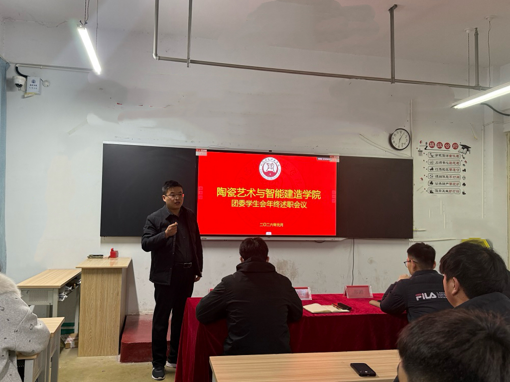 为系统总结学期工作成效,明确后续发展方向,进一步提升学生工作质量,2026年1月5日,陶瓷艺术与智能建造学院团委学生会组织召开述职总结会。学生会全体成员参会,学院党支部副书记卢金刚出席会议并作总结讲话。