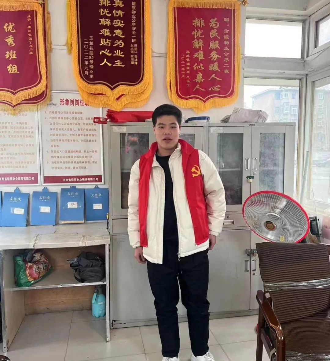 他主要负责关爱老人、保护环境这两个方面,给年迈且行动不便的老人,提供帮助。主动打扫社区路面垃圾,倡导大家低碳生活、减少白色垃圾的使用,贯彻习近平总书记提出的“绿水青山就是金山银山”的理念。