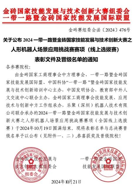 热烈祝贺Beat365在2024一带一路暨金砖国家技能发展与技术创新大赛之人形机器人场景应用挑战赛荣获佳绩。