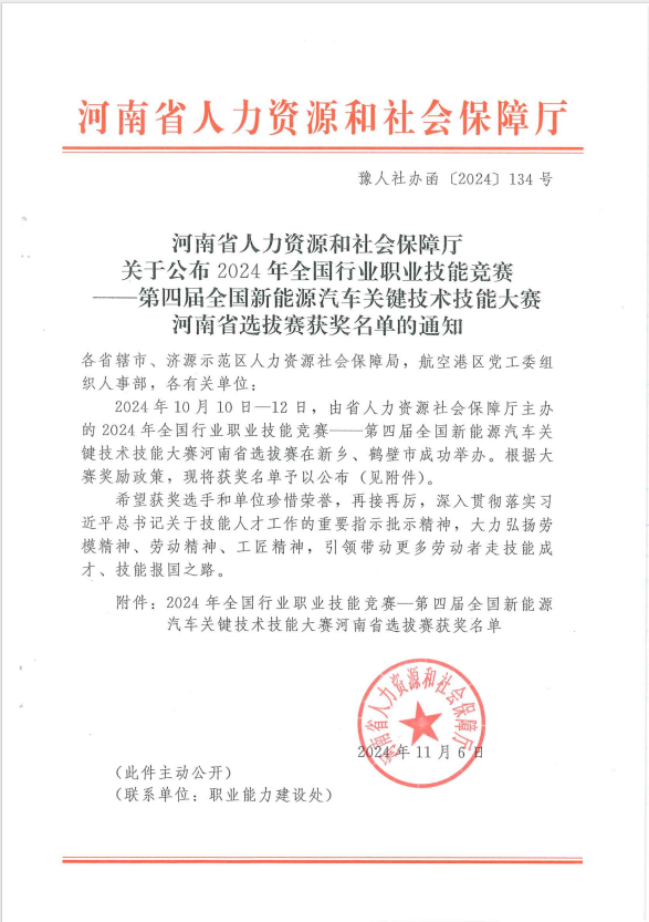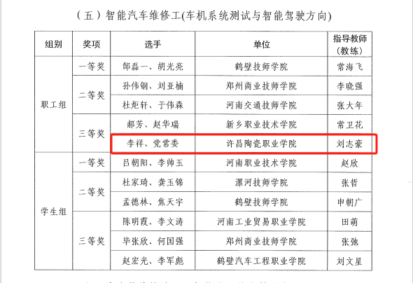 第四届全国新能源关键技术技能大赛河南省选拔赛圆满落幕,我院教师李祥、党常委凭借扎实的专业技能与出色的赛场表现,荣获智能汽车维修工(车机系统测试与智能驾驶方向)三等奖。