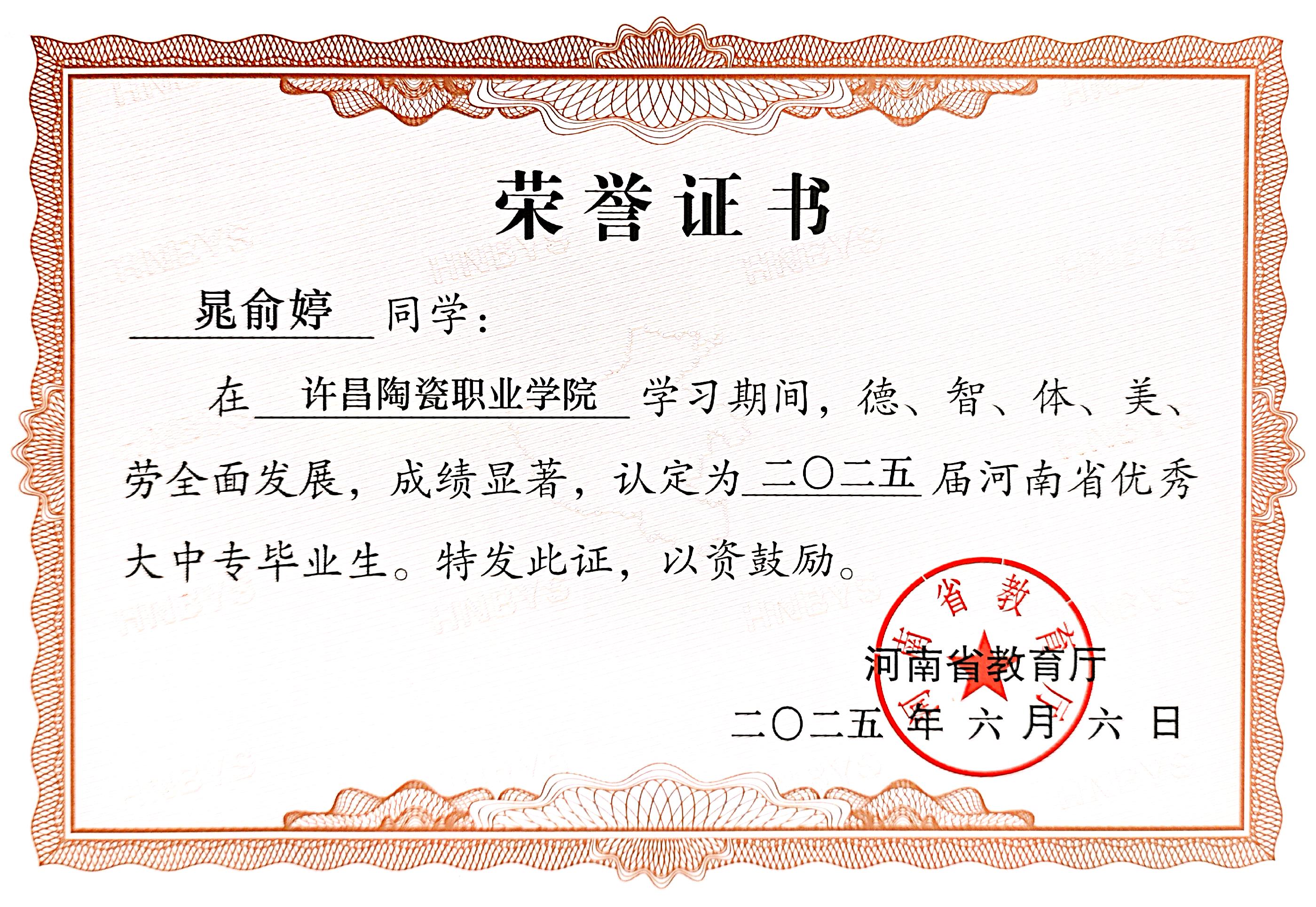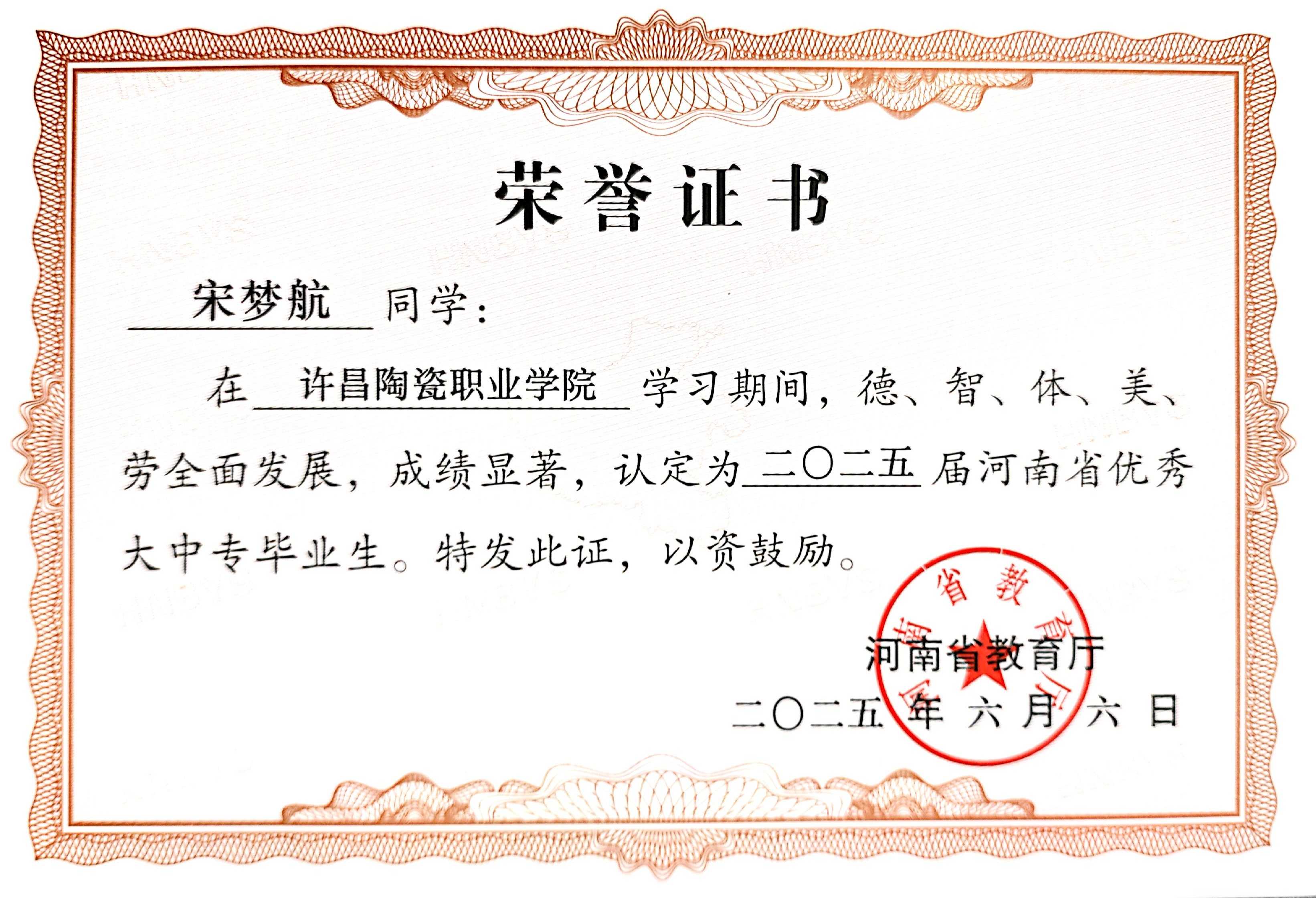 我部3名同学获得2025年河南省优秀大中专毕业生荣誉称号