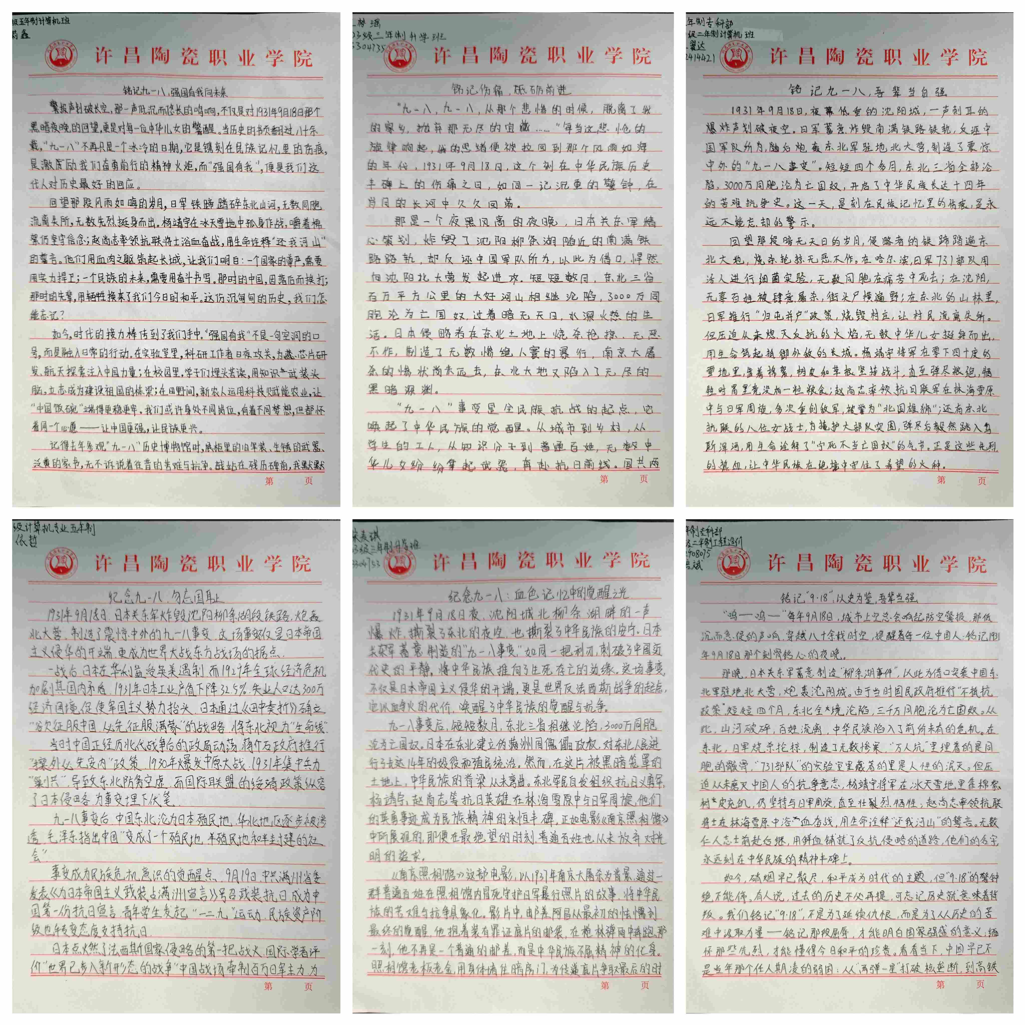 近日,为铭记历史、缅怀先烈,激发学生的爱国热情,五年制专科部开展“勿忘国难日,励志强国心”主题征文展览活动。