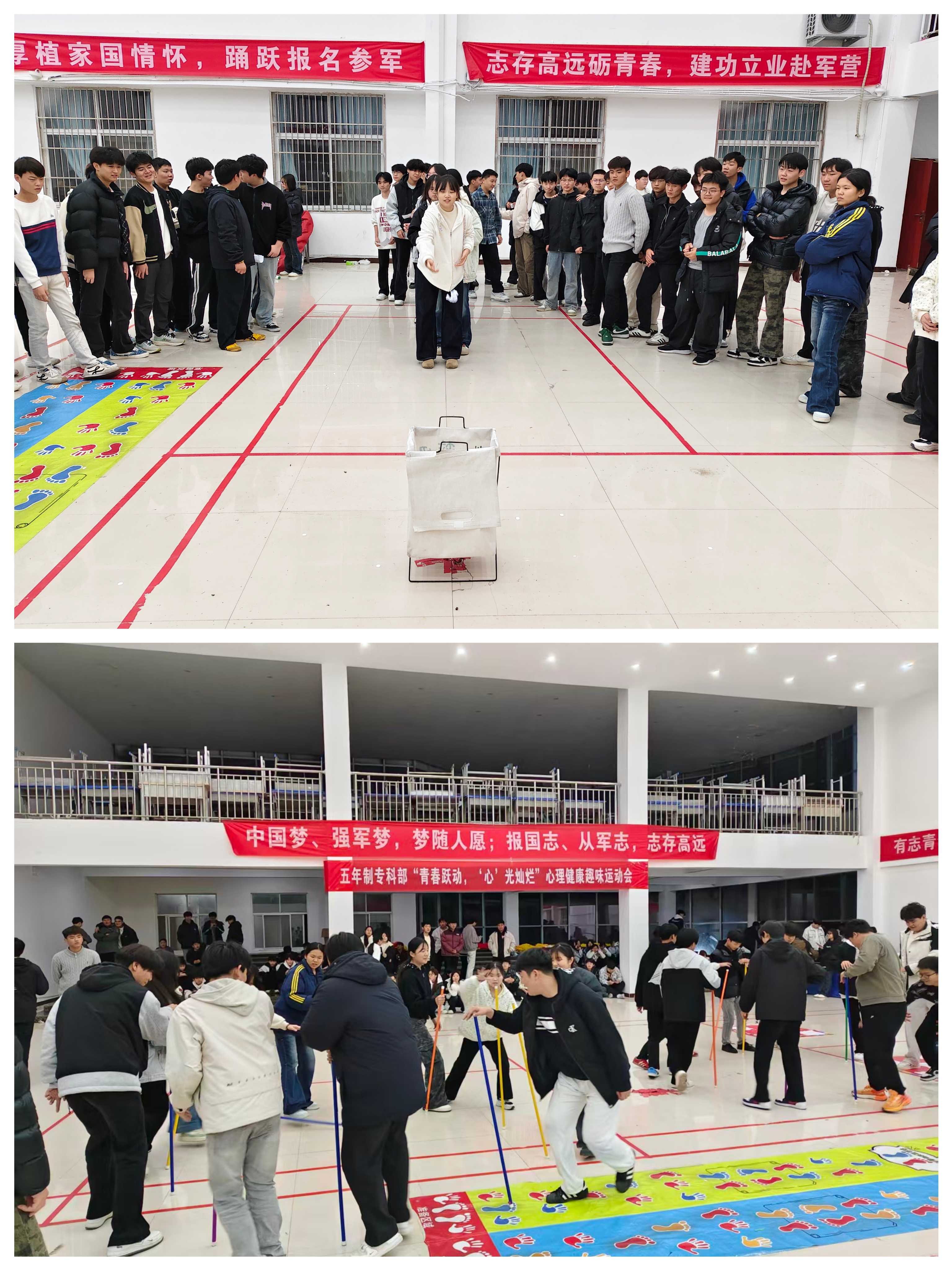 为缓解学生学业压力,促进学生身心健康发展,增强班级凝聚力,11月6日,五年制专科部在室内体育馆举办“青春跃动,‘心’光灿烂”心理健康趣味运动会。24级、25级学生共同参与。