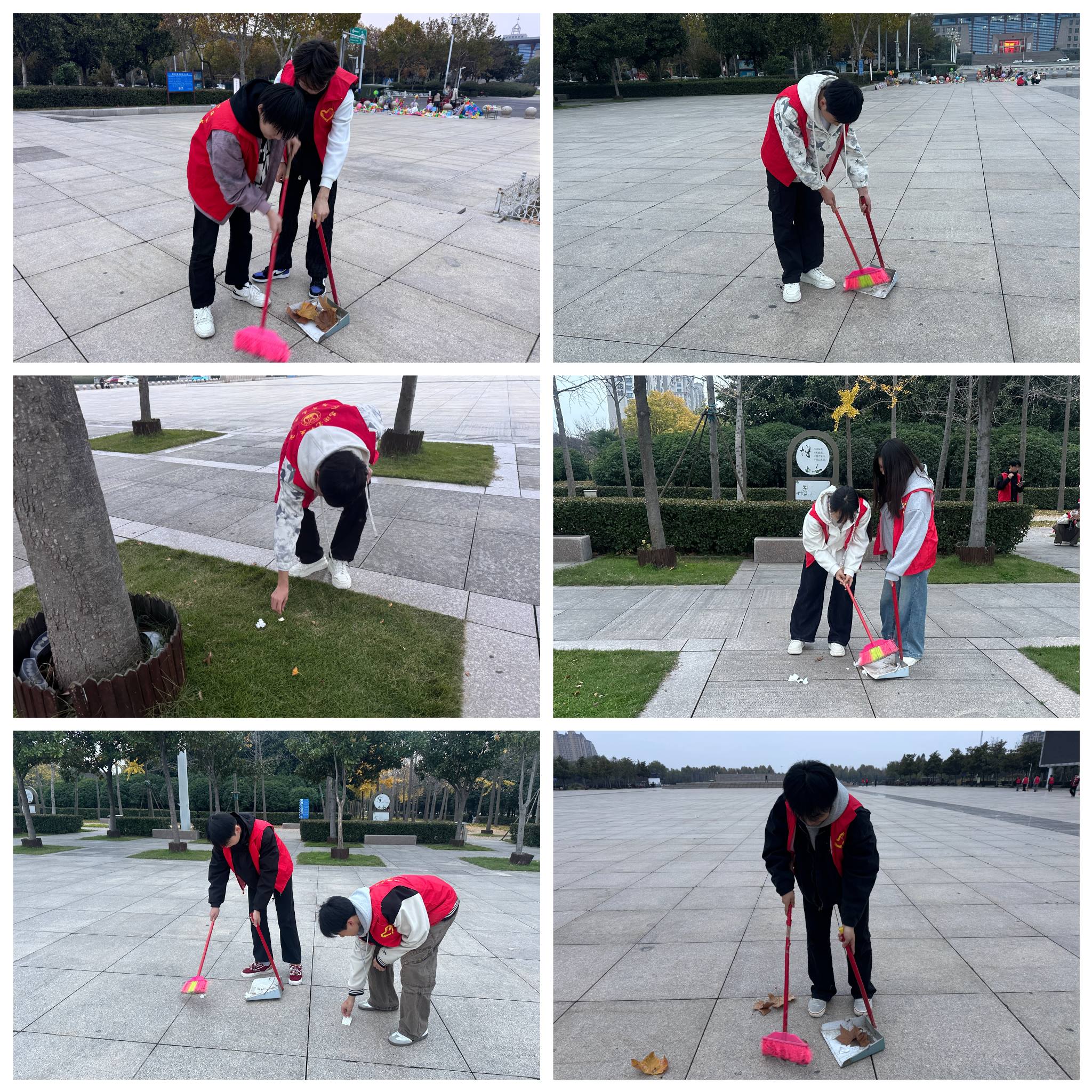 活动现场,志愿者们统一身着红色志愿马甲,手持扫帚、簸箕、环保袋等清洁工具,分组分区域开展清扫工作。大家分工明确、配合有序,重点对公园主干道、绿化带、公共休息区等场所的落叶、纸屑、塑料包装等杂物进行清理,并对部分公共设施进行擦拭维护。在劳动过程中,同学们充分发扬不怕脏、不怕累的实干精神,不放过任何一个卫生死角,以实际行动践行爱护环境、服务社会的理念,展现了五年制专科部学子良好的精神风貌。