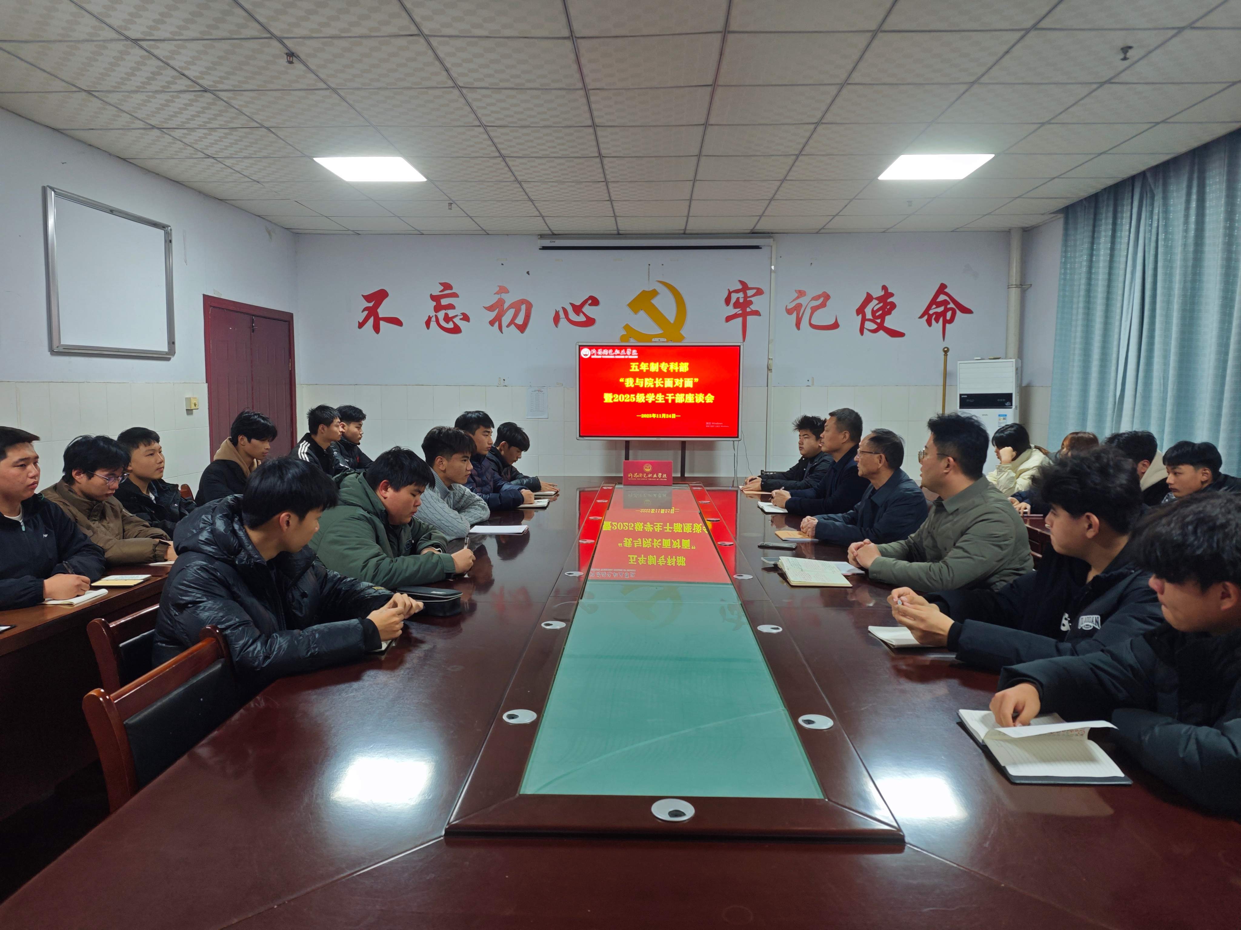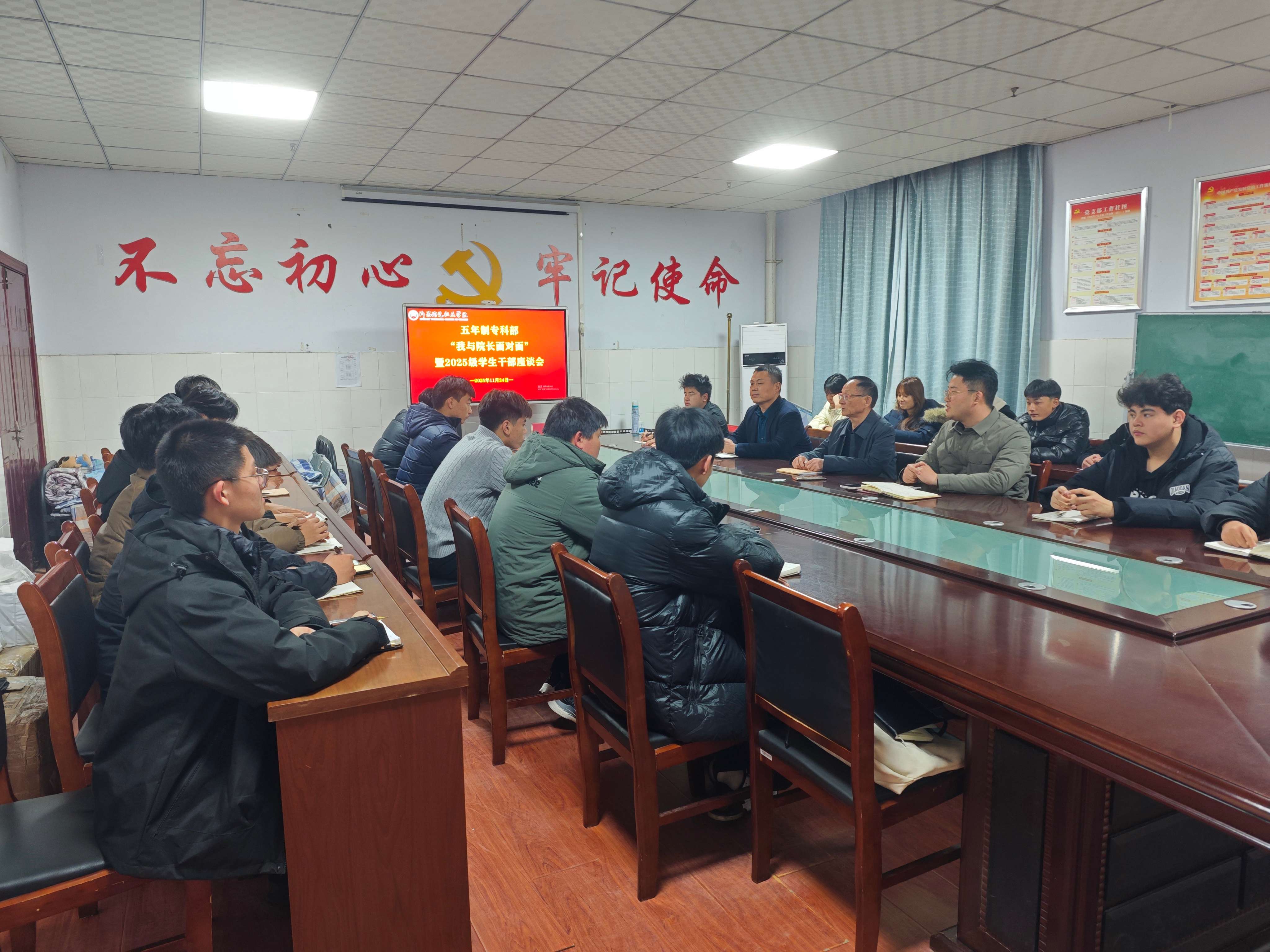 为加强师生之间的沟通与交流,深入了解新生入学适应情况与实际需求,11月24日,五年制专科部召开“我与院长面对面”暨2025级学生干部座谈会。五年制专科部党支部书记、主任宋群立,学生科科长左梁爽,军管科科长黄勇及2025级部分学生代表参加了此次会议,会议由左梁爽主持。