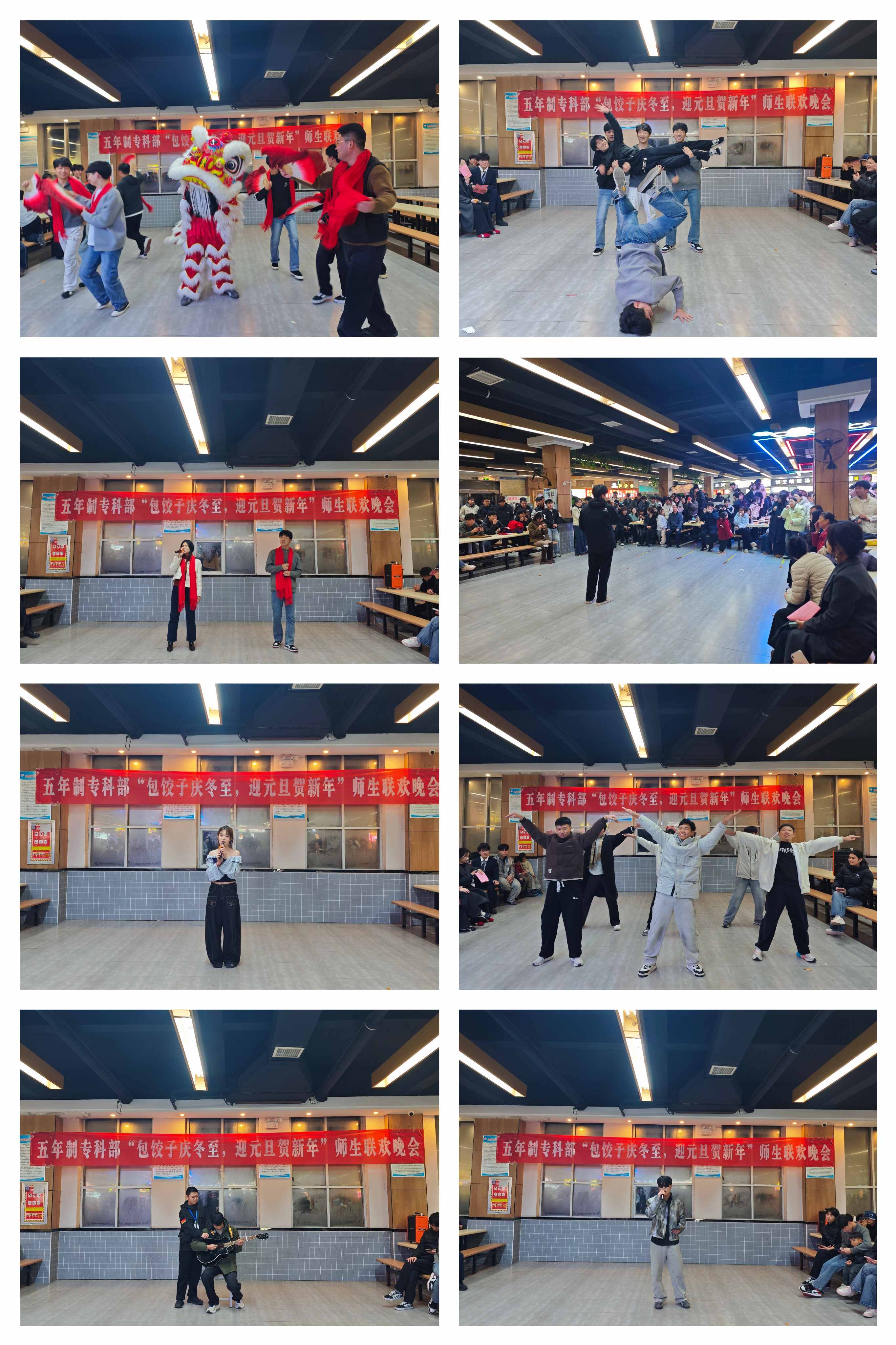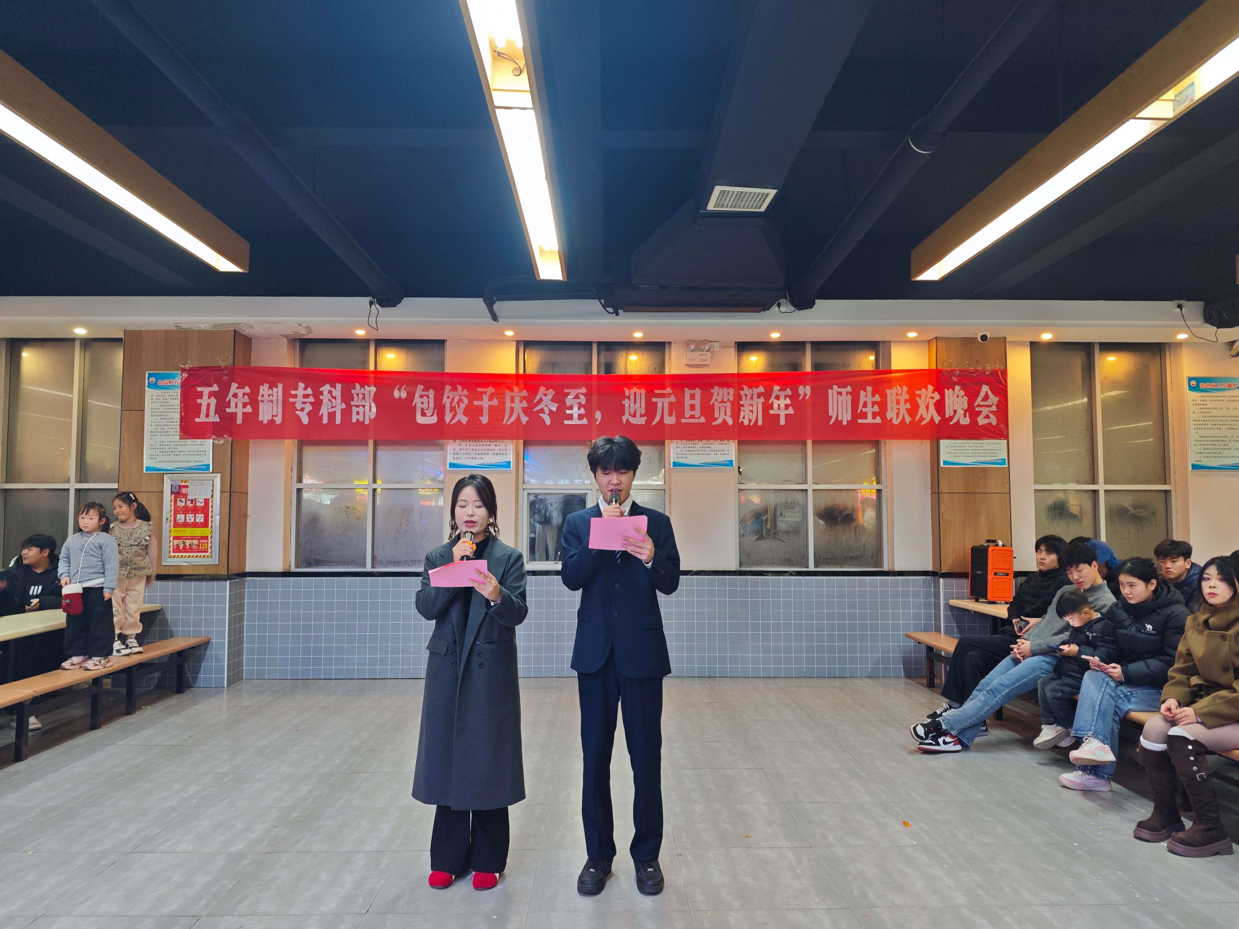 为丰富校园文化生活,增进师生情谊,营造温馨和谐的节日氛围,12月18日,五年制专科部精心举办了“包饺子庆冬至,迎元旦贺新年”师生联欢晚会。本次联欢晚会由2023级学生张万通、宋麦琪主持。