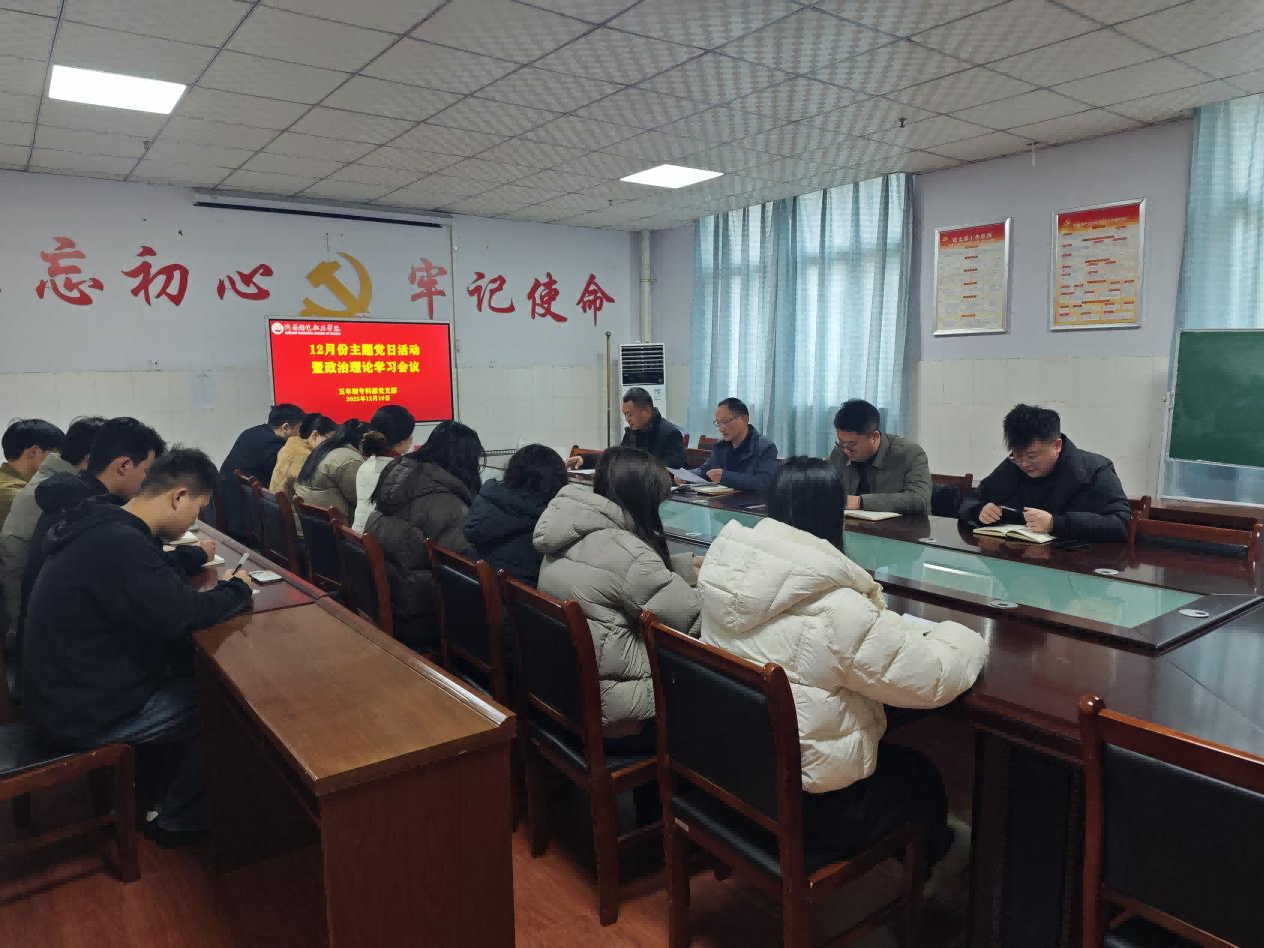 为进一步提升党员的政治理论素养,12月19日,五年制专科部党支部组织召开12月份主题党日活动暨政治理论学习会议。全体党员、入党积极分子参加了此次会议,会议由党支部书记宋群立主持。