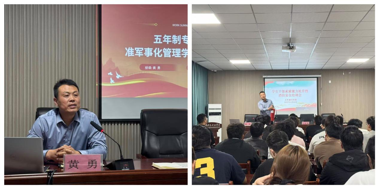 黄勇针对准军事化管理及消防安全知识进行了详细讲解。他首先强调了准军事化管理对于培养学生纪律性、集体荣誉感和自我管理能力的重要作用,通过列举典型事例,让学生深刻认识到严格纪律对个人成长与集体发展的重要意义。接着,他结合近年来校园及社会发生的火灾案例,系统讲解了火灾预防、初期火灾扑救、疏散逃生等基本知识,并现场演示了灭火器的正确使用方法,确保大家熟练掌握基本的消防技能。