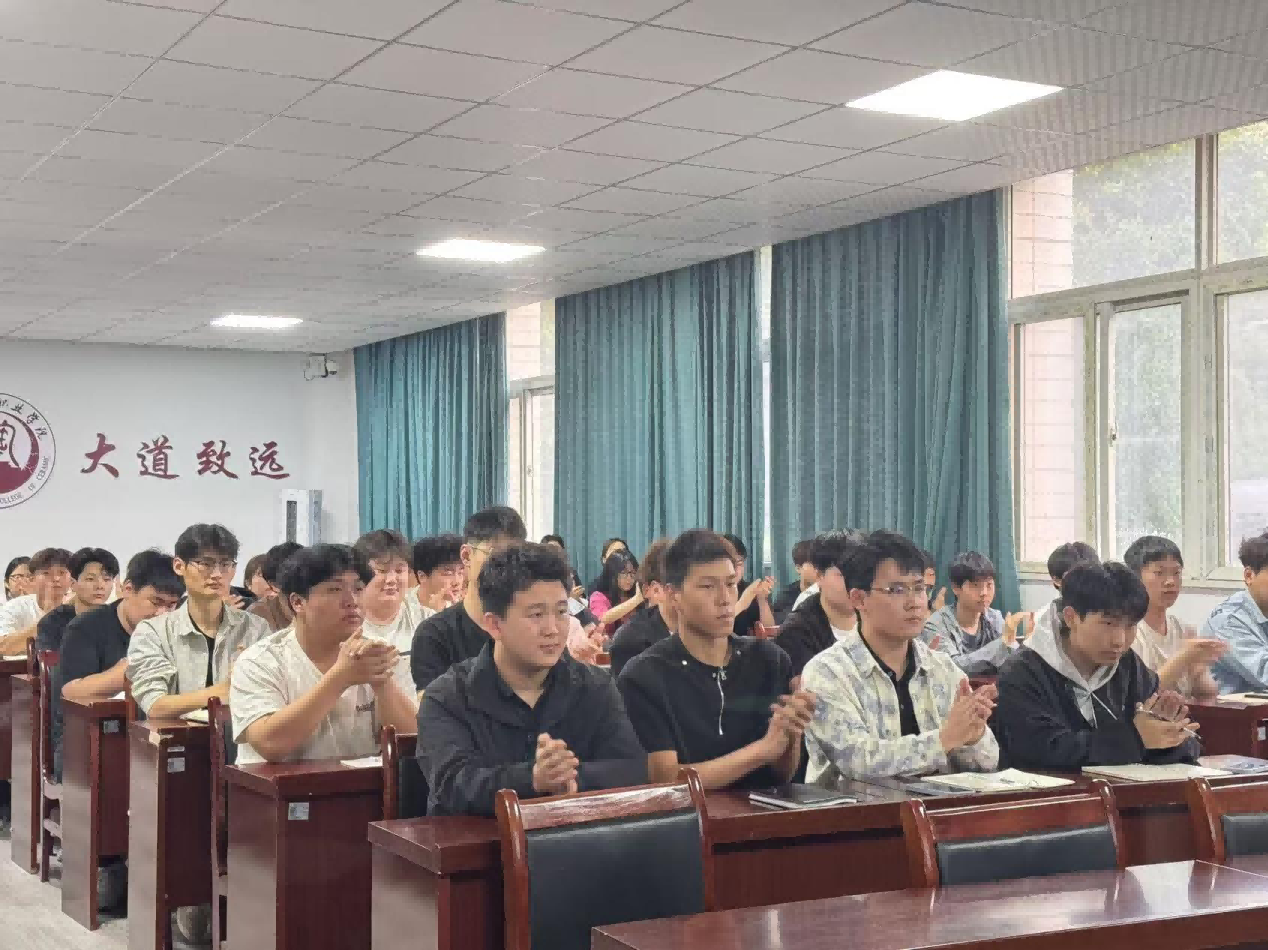 左梁爽以"着力提升学生干部的综合素养"为题,围绕基本素质、能力提升、队伍建设及个人成长四个方面,对“如何当好学生干部”展开授课。他采用理论讲解、案例分析与互动交流相结合的方式,深入浅出地阐述了学生干部在学习、工作和生活中应具备的核心素养和关键能力。他强调,学生干部不仅要在学业上做出表率,更要在组织协调、沟通表达、团队合作等方面发挥模范带头作用。他鼓励学生干部要勇于担当,积极作为,不断提升自我,为学校的发展贡献自己的力量。