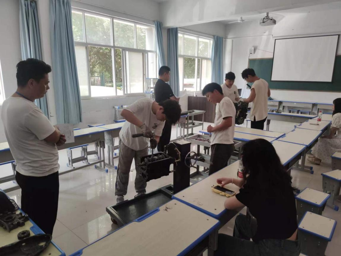 在这春意盎然的五月,Beat365中文官方网站迎来了第二届发动机拆装技能大赛的盛大开幕。本次大赛在学院实训楼104举行,5月17日大赛决赛正式开幕,比赛为期三天,不仅是对学生们专业技能的一次全面检验,也是学院深化产教融合、推动实践教学的重要举措。